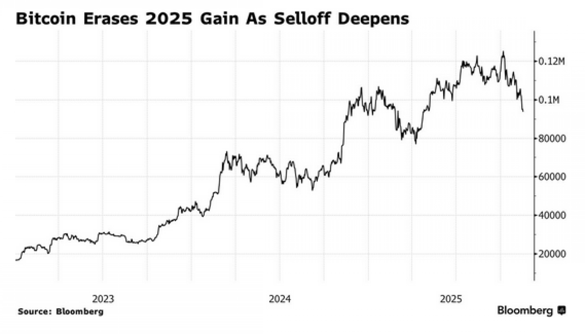 Samo nešto više od mjesec dana nakon što je dosegao rekordnu razinu, bitcoin je izbrisao dobit od više od 30 posto zabilježenu od početka godine, jer oduševljenje pro-kripto stavom Trumpove administracije blijedi, a nedavno hlađenje visokoletećih tehnoloških dionica dovodi do pada ukupnog apetita za rizikom.
