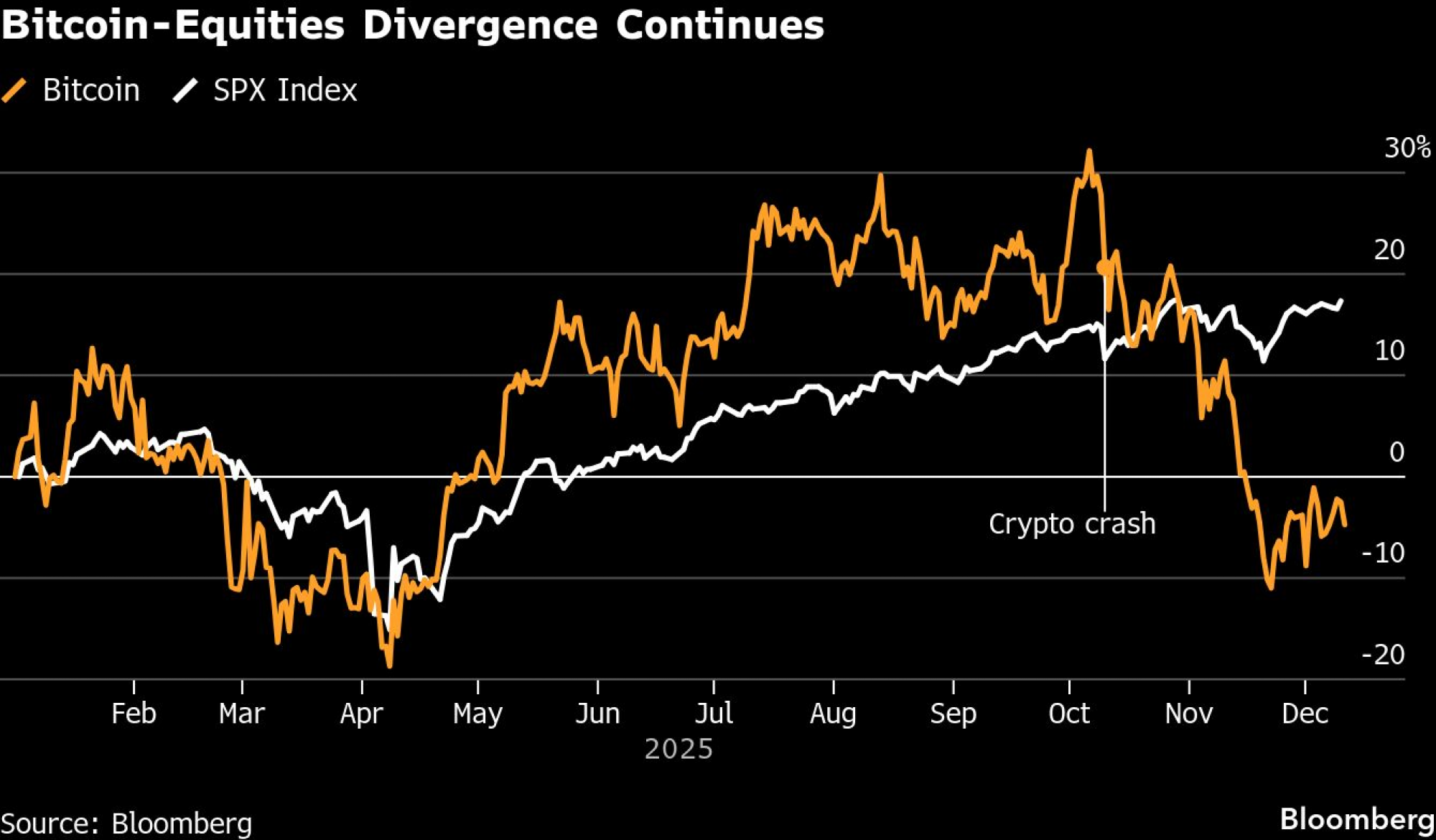 Razilaženje bitcoina i dionica se nastavlja | Bloomberg