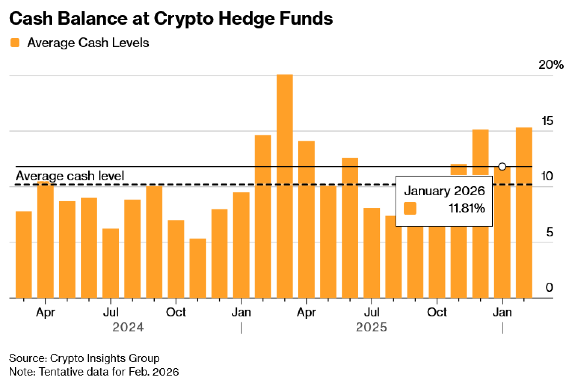 Prema anketama koje je provela tvrtka Crypto Insights Group, sve veći broj menadžera krenuo je u smanjenje rizika u četvrtom tromjesečju kako su se profili rizika i nagrade pogoršali. Neki su fondovi povećali alokacije u gotovini, dok su se drugi, vezani mandatima koji ih obvezuju da ostanu u potpunosti uloženi, umjesto toga prebacili u defenzivnije pozicije.
