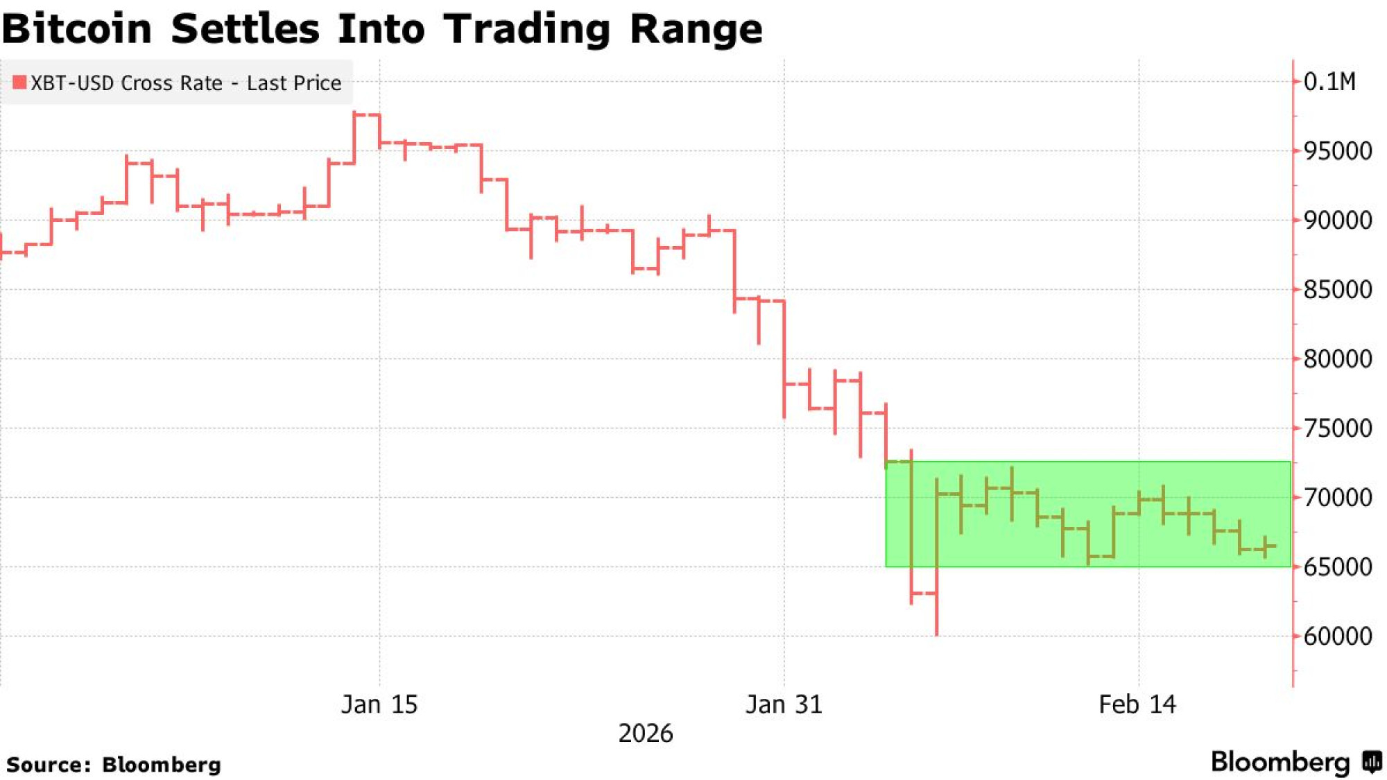 Zloglasno nestabilna kriptovaluta trgovala se u rasponu manjem od tri posto u četvrtak, a tijekom trgovanja u New Yorku nije se puno promijenila na razini od oko 67.000 dolara. Bitcoin je 6. veljače pao za čak 13 posto, najviše u otprilike četiri godine. Token je pao za oko 50 posto u odnosu na rekordnih 127.000 dolara zabilježenih početkom listopada.