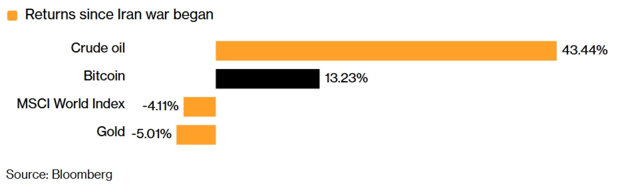 Dok je sirova nafta skočila za više od 40 posto, poluge zlata pale su za otprilike pet posto tijekom mjeseca, a indeks MSCI World pao je za četiri posto. U međuvremenu, bitcoin je u utorak u Aziji probio ključnu psihološku granicu od 75.000 dolara, čime je njegov dobitak od početka rata krajem veljače dosegao gotovo 14 posto.