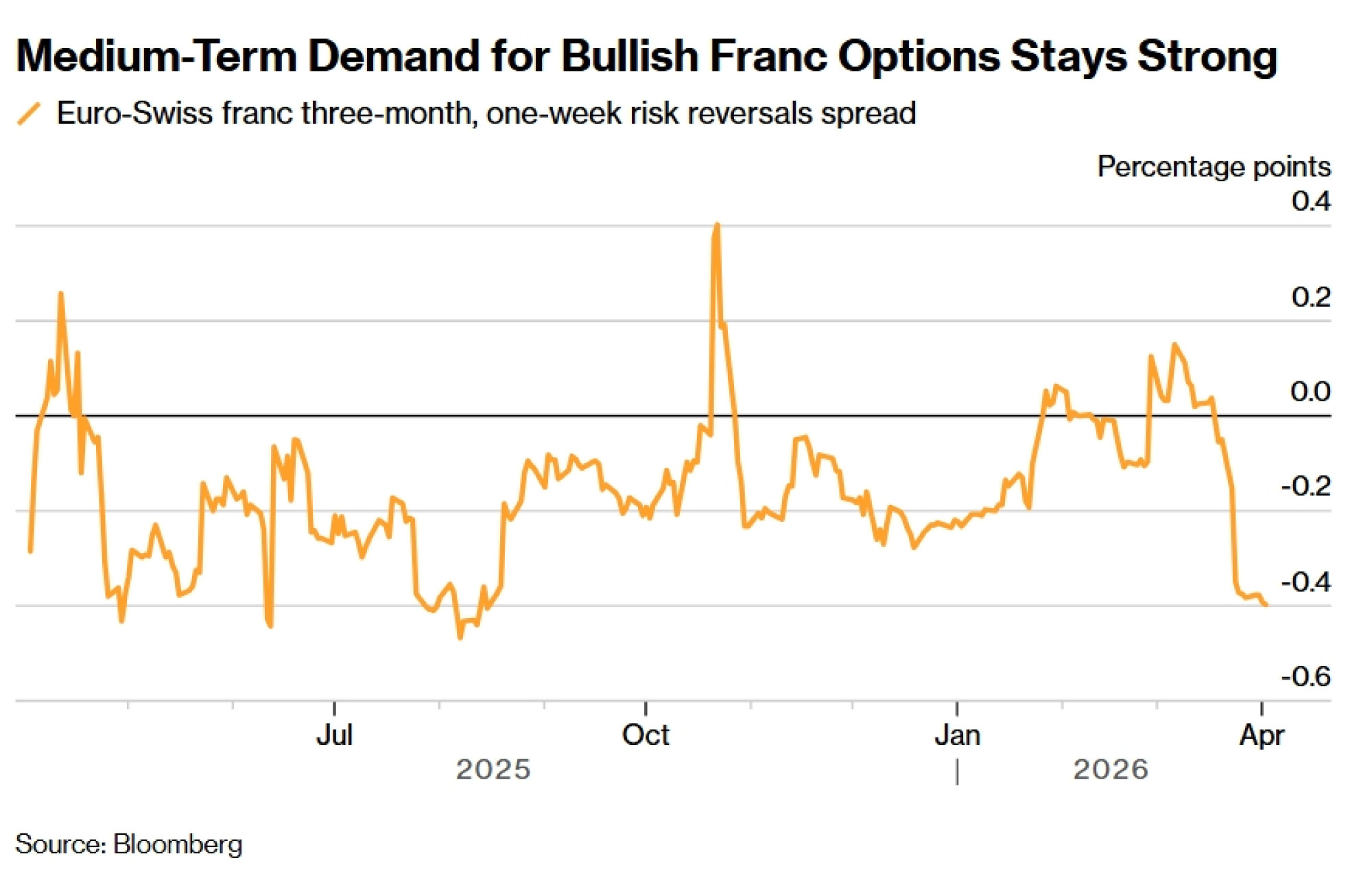 Švicarski franak u posljednje vrijeme nije igrao svoju tradicionalnu ulogu sigurnog utočišta, čak i dok rat s Iranom održava geopolitičku napetost. Trgovanje opcijama sugerira da ta anomalija neće potrajati.