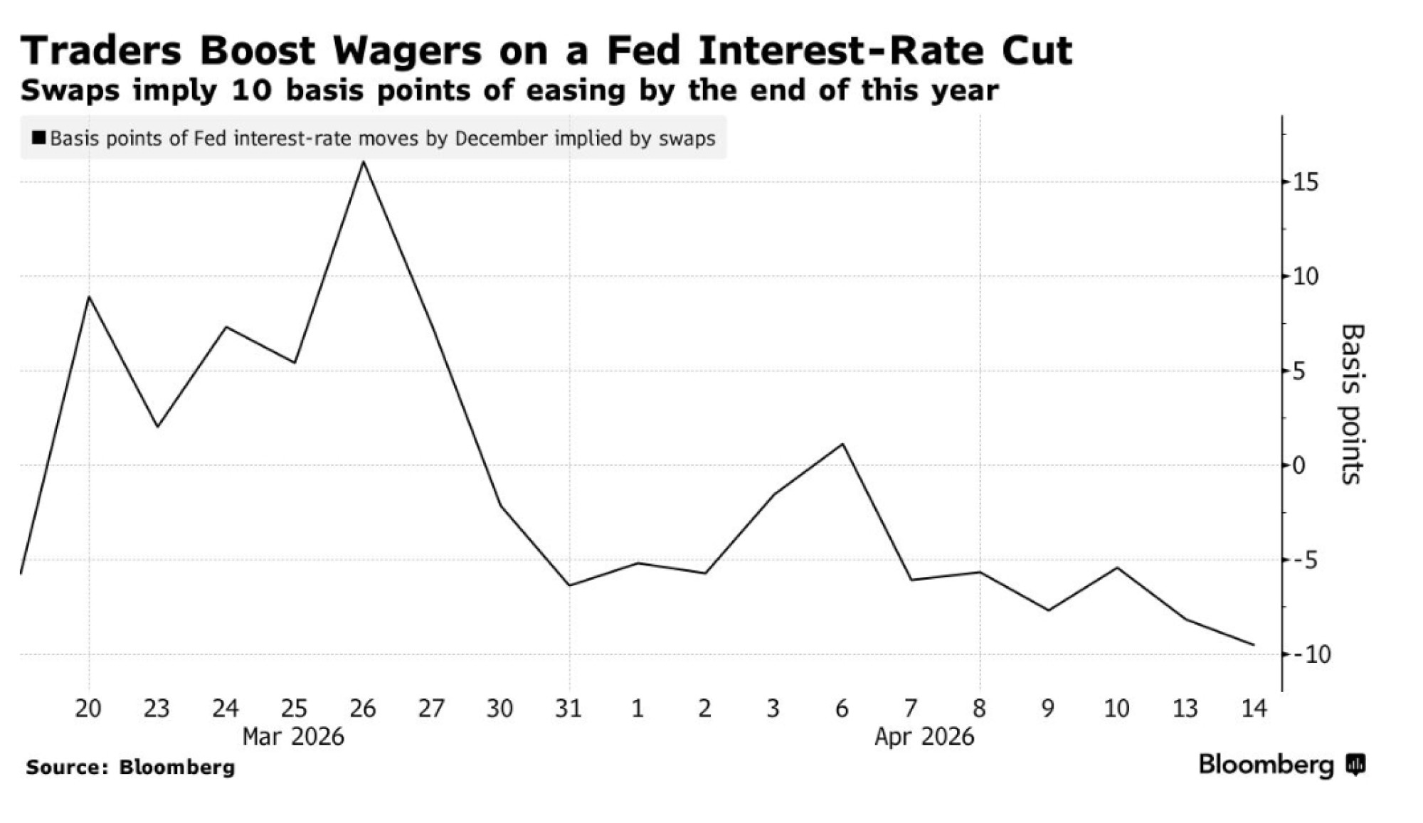 Prinosi na desetogodišnje obveznice pali su za dva bazna boda na 4,28 posto, dok su njemački i britanski ekvivalenti pali za čak pet baznih bodova. Tržišta novca povećala su oklade na smanjenje kamatnih stopa Federalnih rezervi ove godine, procjenjujući šansu od 40 posto u usporedbi s manje od 10 posto rano u ponedjeljak, prema swapovima vezanim uz datume sastanaka o monetarnoj politici. Prije početka rata, swapovi su implicirali dva puna smanjenja od po četvrtine postotnog boda.