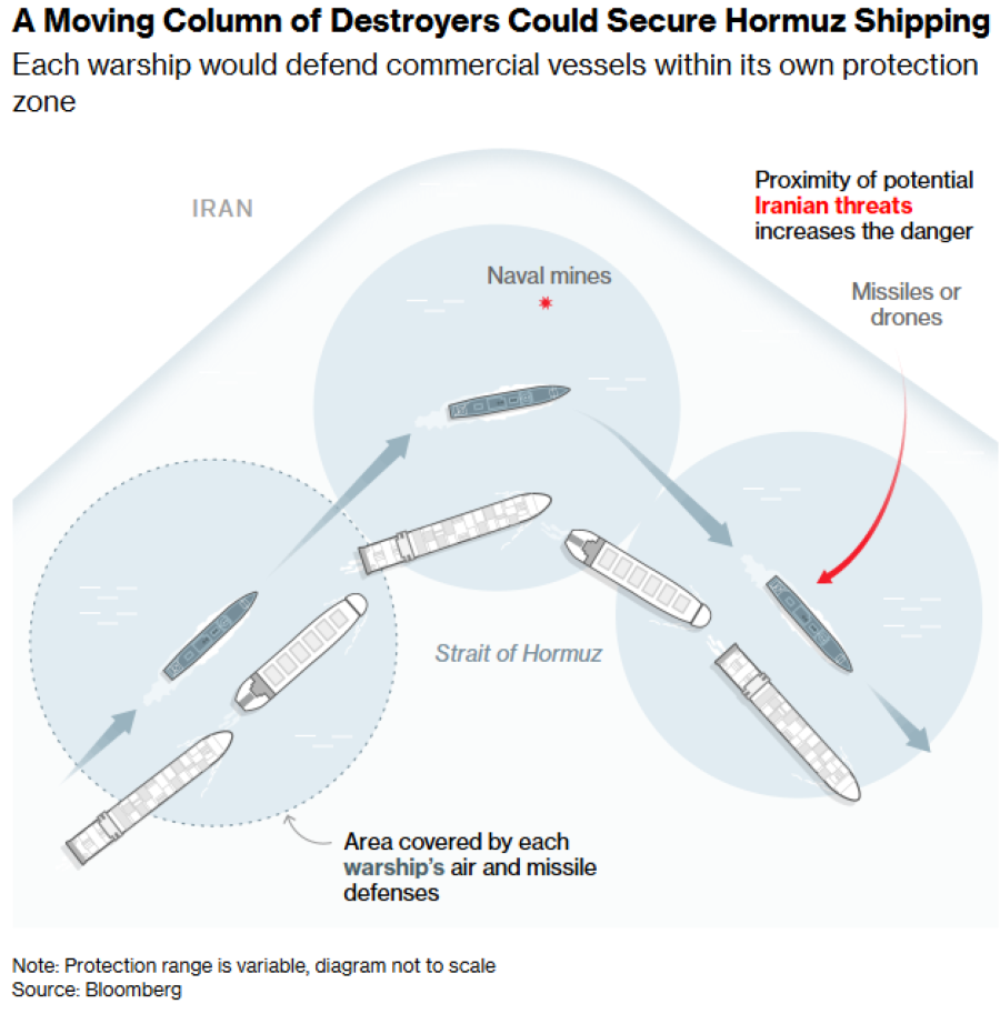 Čak i nakon završetka borbi, vlasnici brodova bez iranskog jamstva sigurnog prolaza vjerojatno će tražiti neku vrstu vojne zaštite. Pomorske pratnje mogle bi pružiti potrebnu sigurnost. Ako to ponovno uspostavi značajniju razinu prometa, moglo bi ublažiti poremećaje u opskrbi i smanjiti globalne cijene energije koje su naglo porasle od izbijanja sukoba.