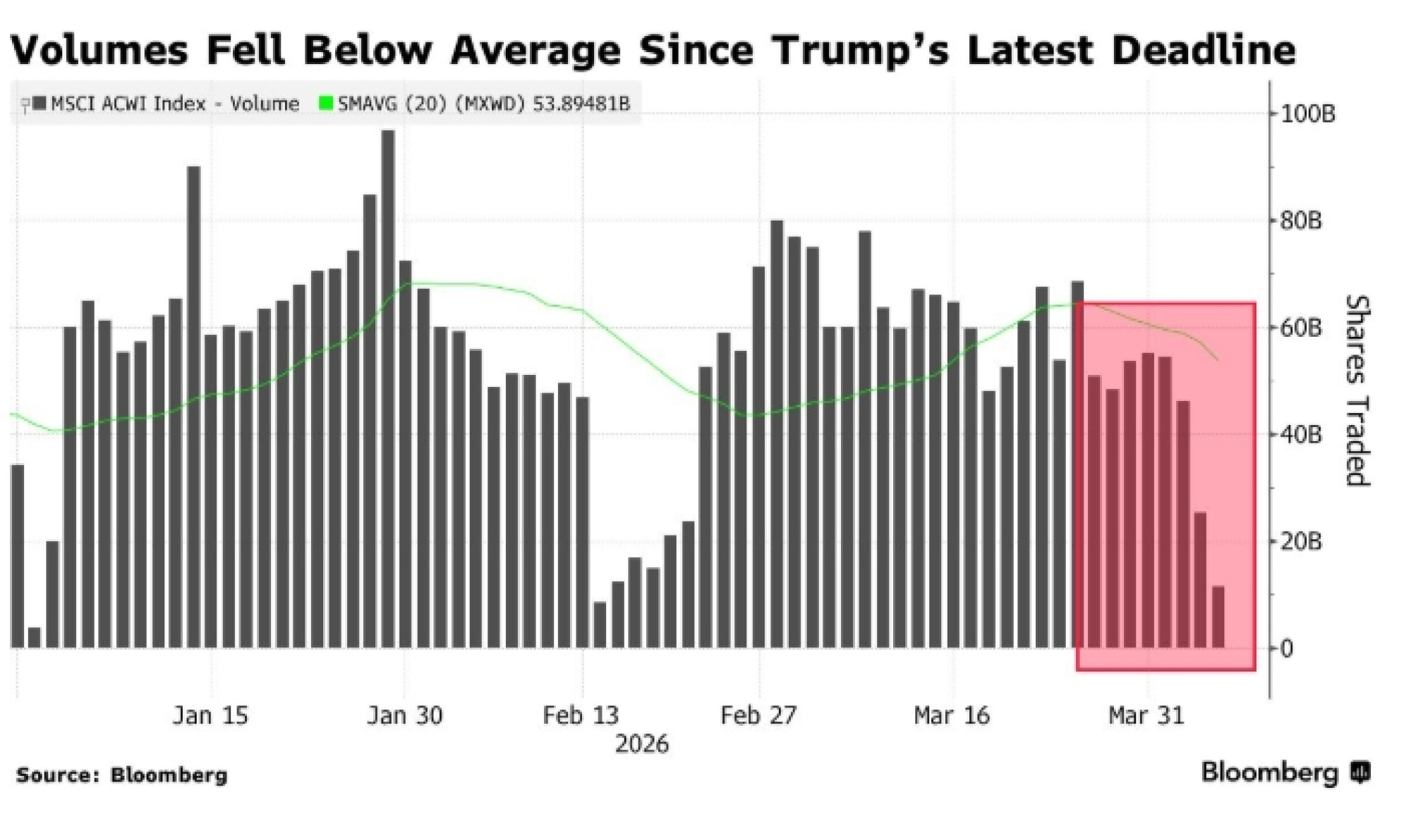 To je scena koja se ponovila mnogo puta posljednjih tjedana jer je Trump višekratno postavljao rokove prije nego što bi ih produžio, što je izazvalo valove tržišnih oscilacija zbog kojih su se trgovci borili da održe korak. Pokazatelji volatilnosti dionica i valuta dosegli su višemjesečne vrhunce dok otkucava vrijeme do njegovog najnovijeg roka u utorak u 20:00 sati po njujorškom vremenu.