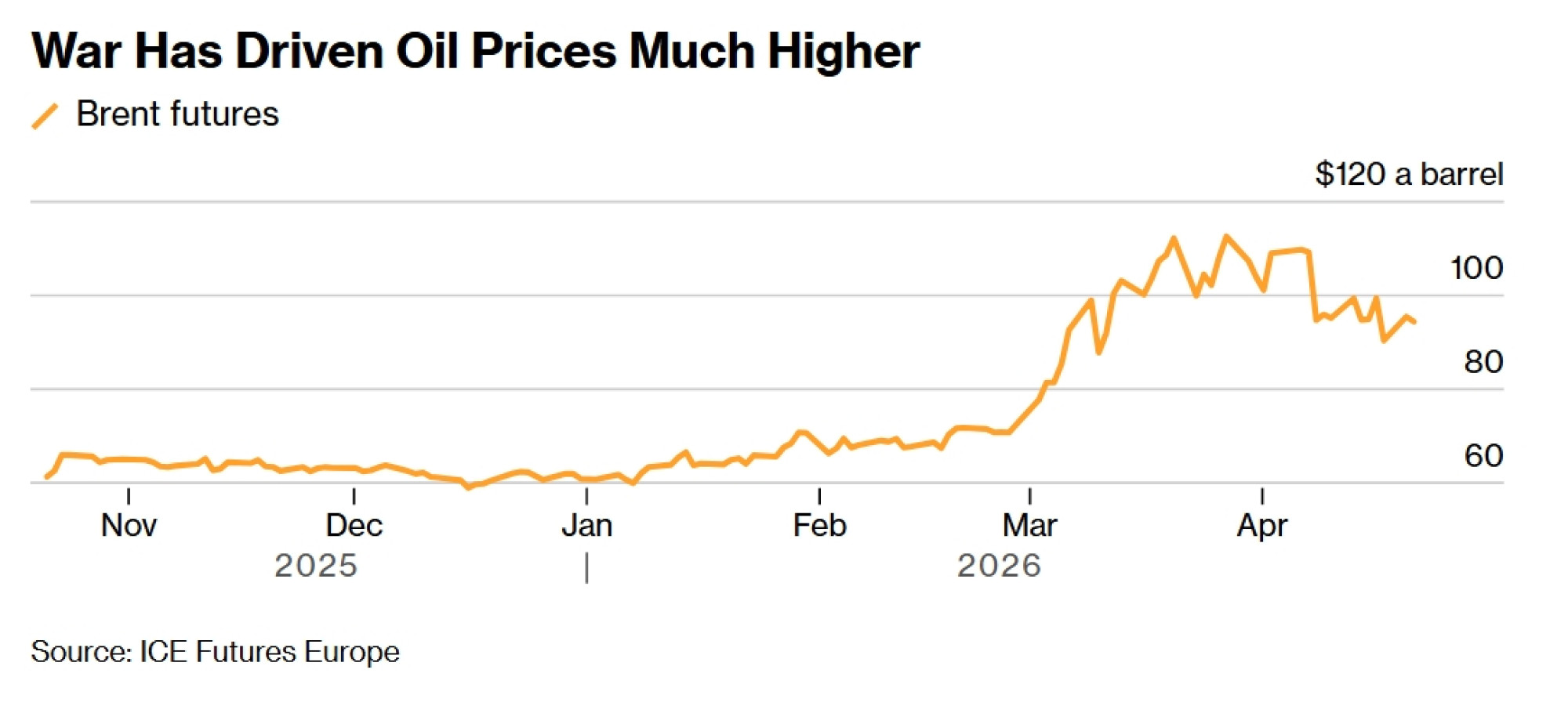 Referentne cijene terminskih ugovora za sirovu naftu porasle su za oko 30 posto od početka rata. U ožujku su dosegnule vrhunac od blizu 120 dolara po barelu, iako se sada trguje oko 95 dolara zbog znakova da će Iran sudjelovati u pregovorima s SAD-om o okončanju sukoba.
