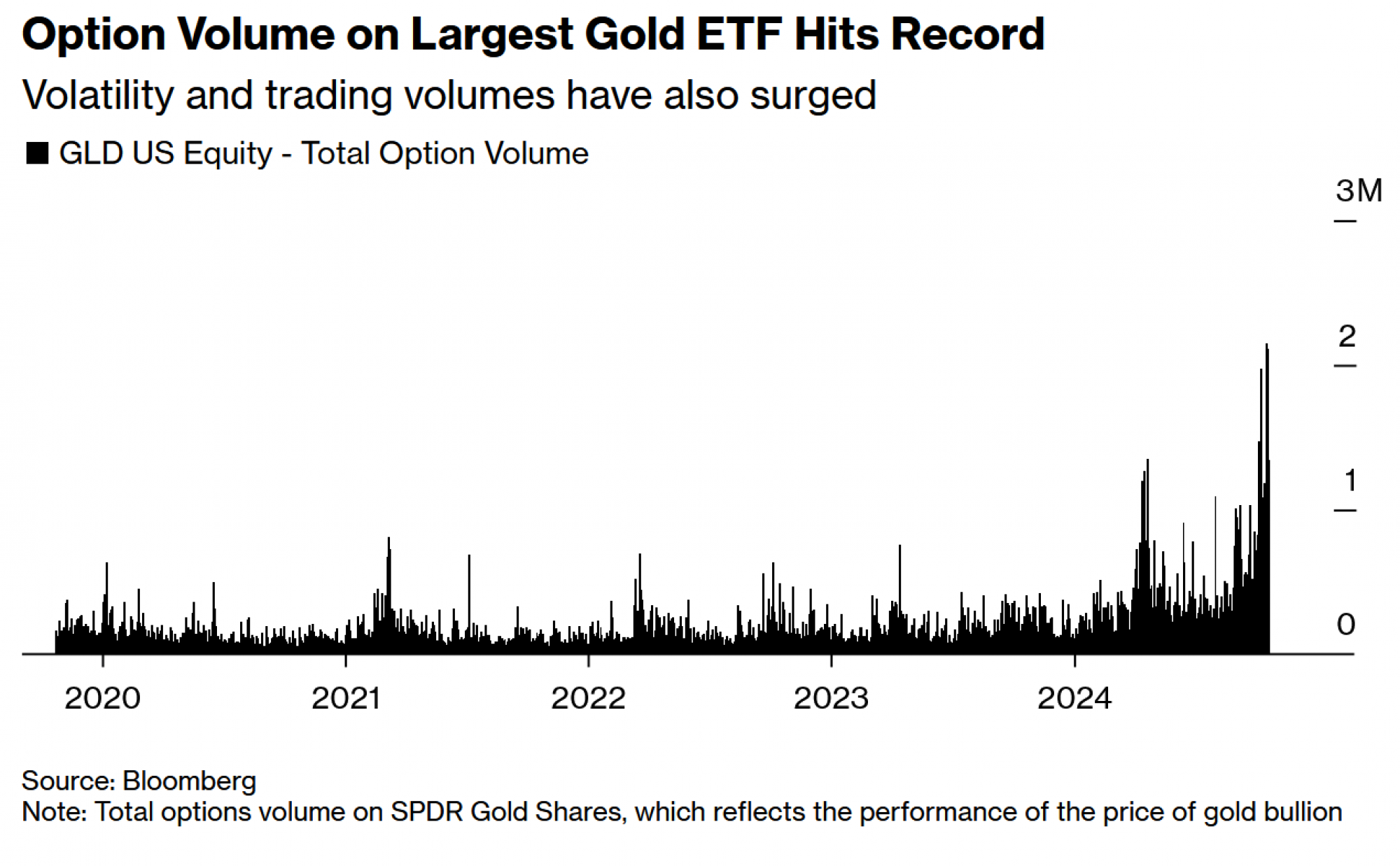 Više od dva milijuna ugovora o opcijama povezanih s najvećim svjetskim burzovno trgovanim fondom s zlatnom podlogom trgovalo se i u četvrtak i u petak prošlog tjedna, nadmašivši prethodni rekord.