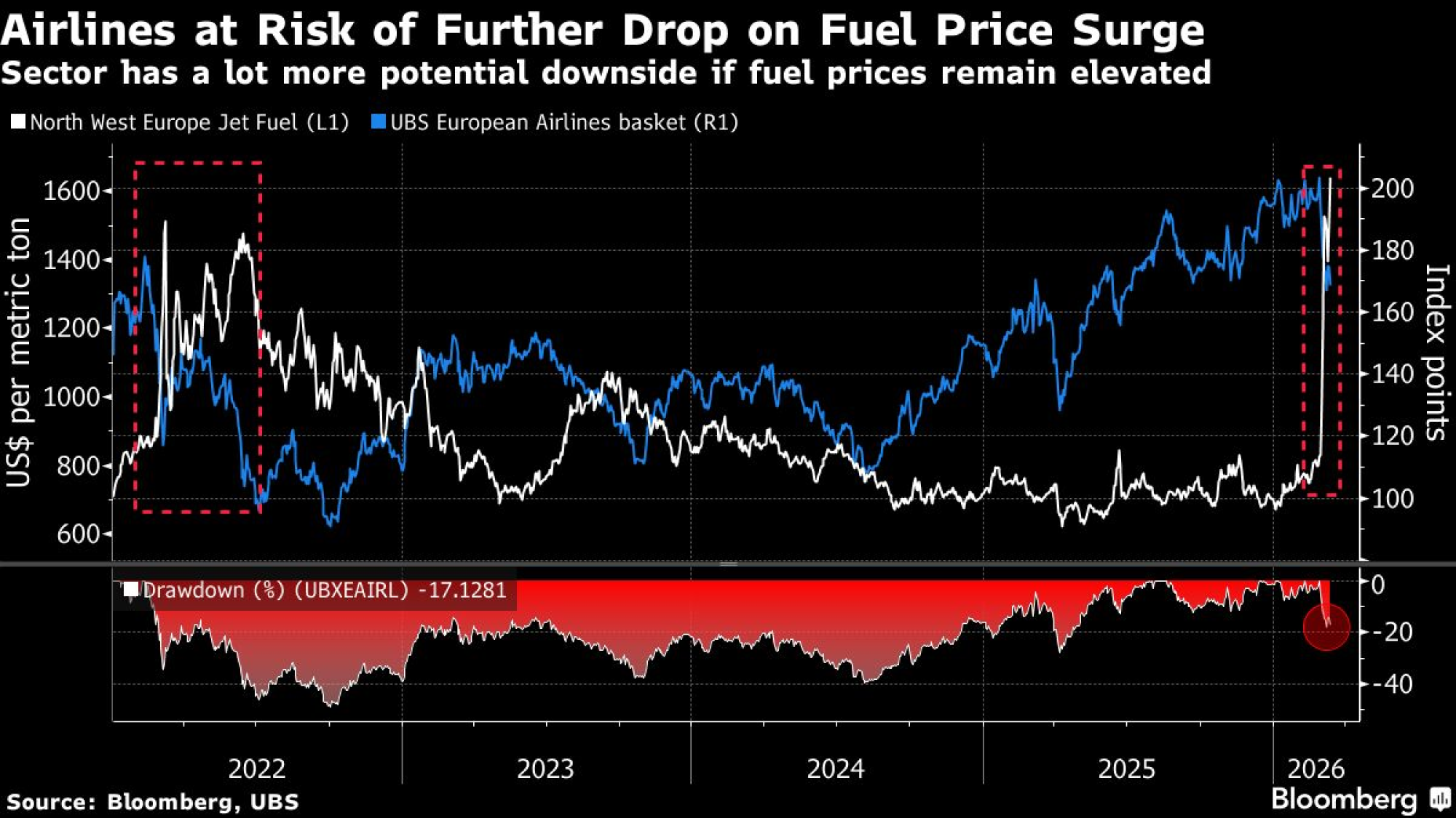 Košarica europskih aviokompanija koju prati UBS pala je oko 14 posto od početka mjeseca. Isti je pokazatelj 2022. godine u jednom trenutku potonuo gotovo 50 posto od vrha do dna.