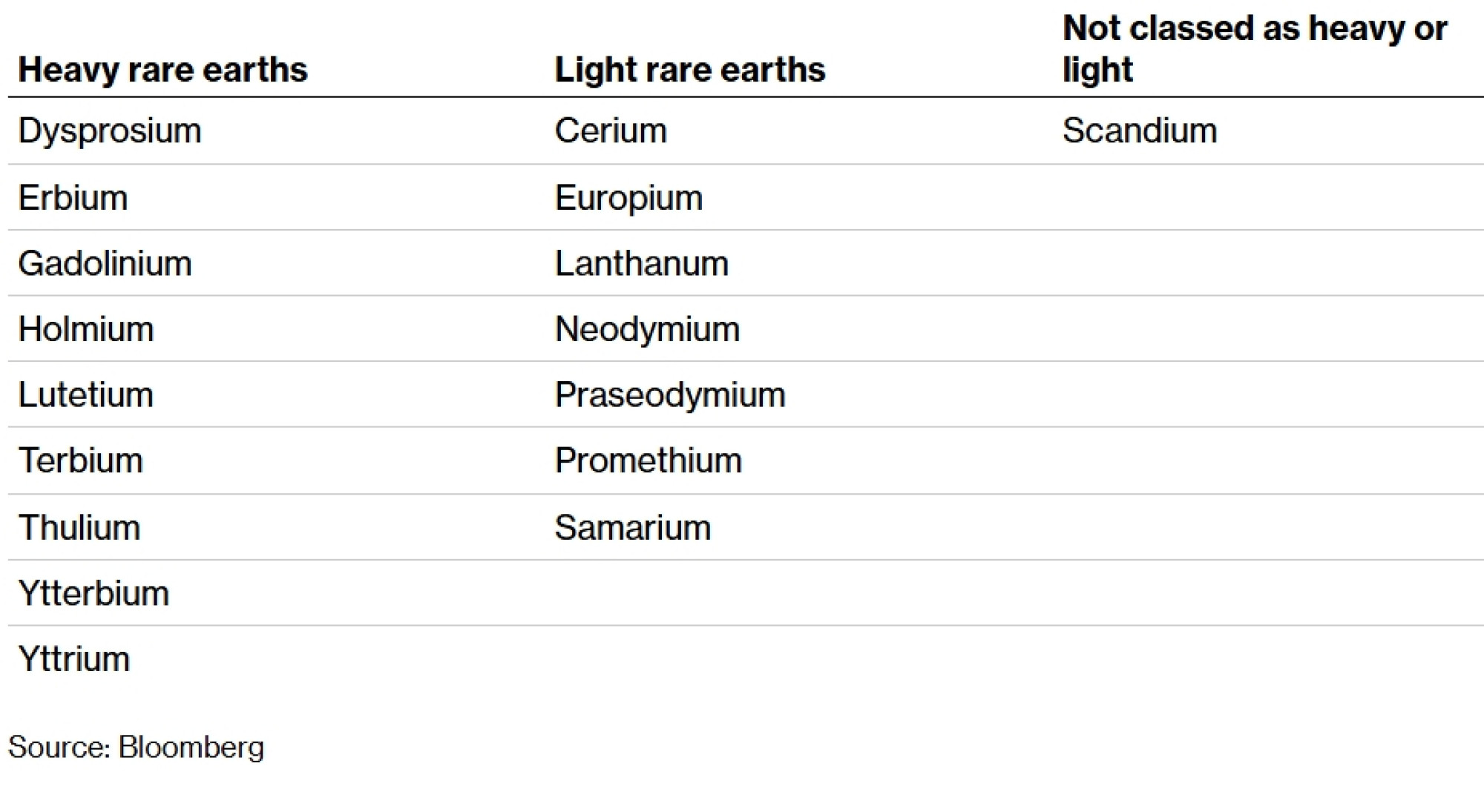 Ionska glina obično je bogatija "teškim" rijetkim zemnim mineralima koje trenutno gotovo isključivo proizvodi Kina. Teški rijetki zemni minerali, kao što su disprozij i terbij, obično su manje zastupljeni i vrjedniji od lakših varijanti. Koriste se u trajnim magnetima koji su bitne komponente u električnim automobilima, vjetroturbinama, podatkovnim centrima i borbenim zrakoplovima.