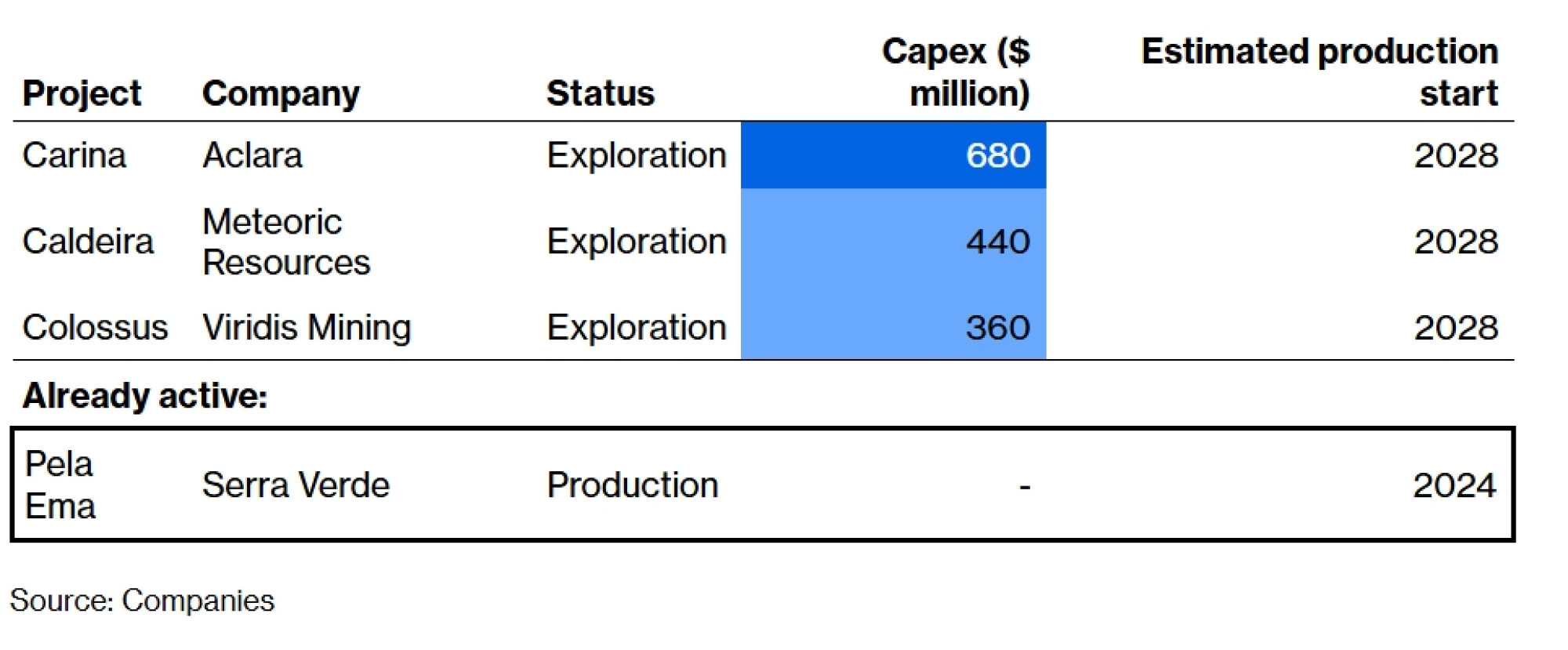Aclara Resources Inc. te australski developeri Meteoric Resources NL i Viridis Mining and Minerals Ltd namjeravaju započeti proizvodnju iz svojih brazilskih resursa do 2028. godine. Kako bi ispoštovali taj raspored, morat će osigurati financiranje do sredine ove godine.
